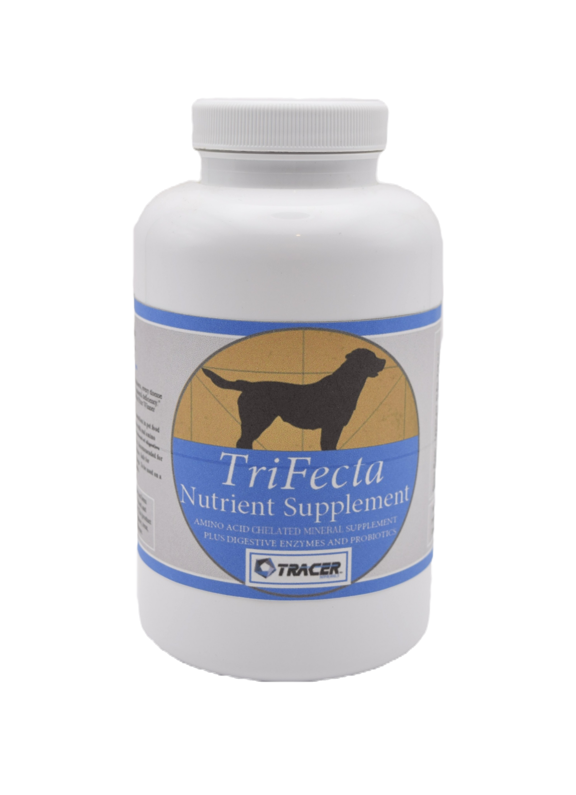 TriFecta Loose Mineral pack is designed to promote the overall health and well-being of your dog. Made with real Amino acid-chelated trace minerals, vitamins, probiotics, and digestive enzymes in a balanced formulation to help reduce oxidative stress and significantly improve recovery times after exertion. It is also beneficial with aging dogs to reduce stiffness and maintain gut integrity and homeostasis. Enhance the quality of life of your pet and help them do what they love! Great nutritional additive for kibbles, wet-based, BARF, and other diets. It can also be incorporated into treats as an added benefit! The dosing rate is 1 gram per 10 lbs. Containers come in 250 or 550-gram sizes.